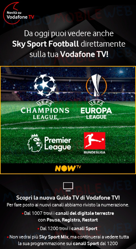 La novità sembra riguardare solo i clienti che hanno già il Ticket Sport di NOW TV incluso con Vodafone TV, che prevede lo sport di Sky al completo.