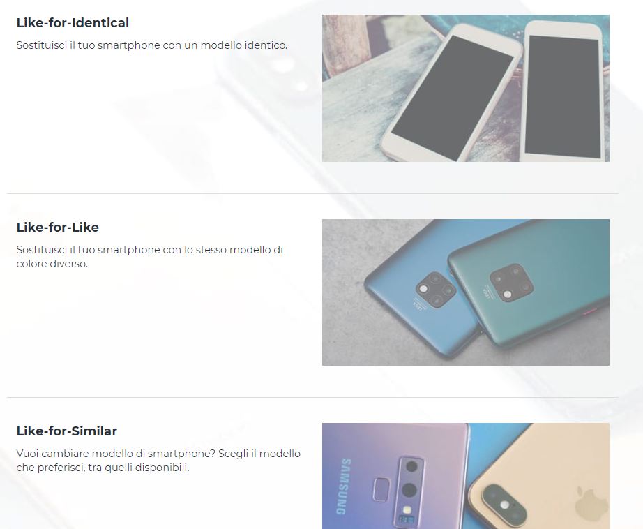 - Like4Identical, che offre un dispositivo di identica marca, modello, capacità e colore di quello precedente;