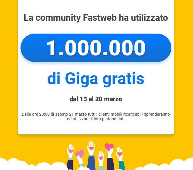 L’iniziativa che metteva a disposizione 1 milione di Giga totali per i clienti era stata ufficializzata il 13 Marzo 2020 ed era valida in automatico su tutte le offerte mobili voce ricaricabili, residenziale o partita IVA.