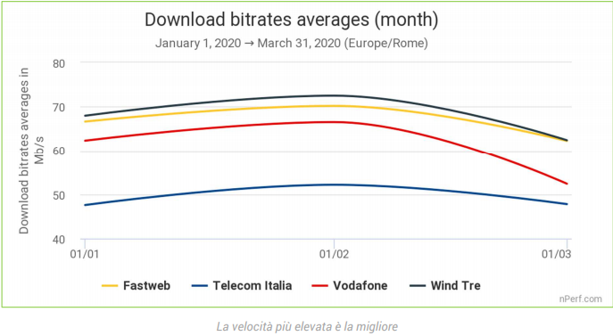 Le velocità secondo nPerf di TIM, Vodafone, WindTre, iliad e Fastweb durante l’emergenza Coronavirus