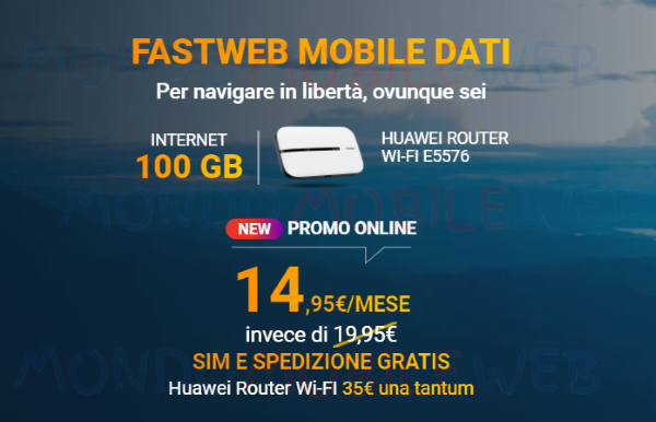 Fastweb Mobile Dati: offerta con 100 Giga e router 4G Huawei attivabile anche online
