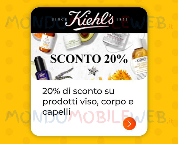 Per quanto riguarda lo sconto del 20% Kiehl’s, questo è valido su un assortimento di prodotti viso, corpo e capelli acquistati solo sul sito kiehls.it, entro il 22 Ottobre 2020, salvo cambiamenti, spendendo almeno 25 euro.