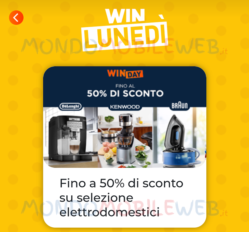 I due premi appena descritti potranno essere riscattati entro le 23:59 della giornata di oggi e potrebbero essere riproposti pure il Sabato successivo, per mezzo dell’iniziativa Re-WinLunedì. Non si esclude che alcuni clienti possano ricevere premi o sconti differenti.