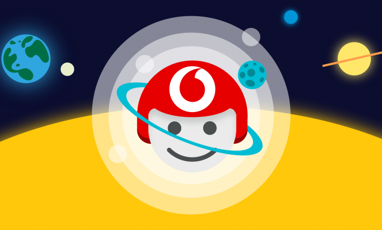 Per l’occasione, l’icona dell’assistente digitale di Vodafone è circondata da una luna e da un anello planetario, come quelli del pianeta Saturno.