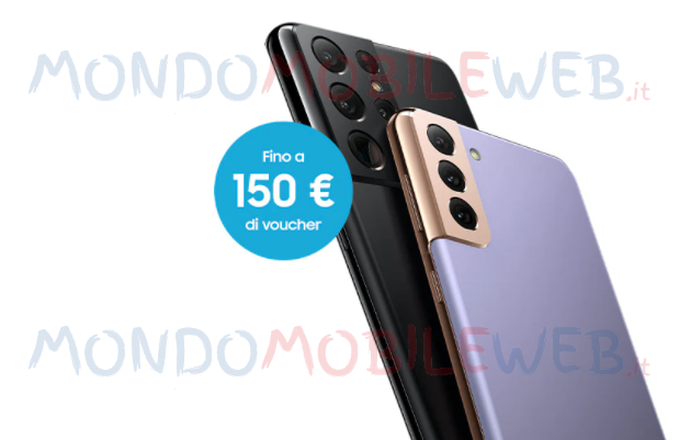 - Buono sconto del valore di 150 euro per l’acquisto degli smartphone Samsung Galaxy S21+ 5G (codice modello SM-G996B) e Samsung Galaxy S21 Ultra 5G (codice modello SM-G998B).