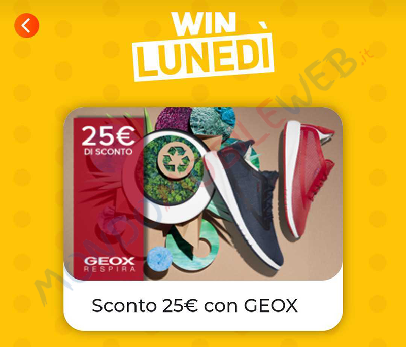 La scontistica odierna ha un valore di 25 euro ed è valida per acquisti effettuati sul sito ufficiale di Geox, a fronte di una spesa minima di 80 euro (spedizione standard gratuita).