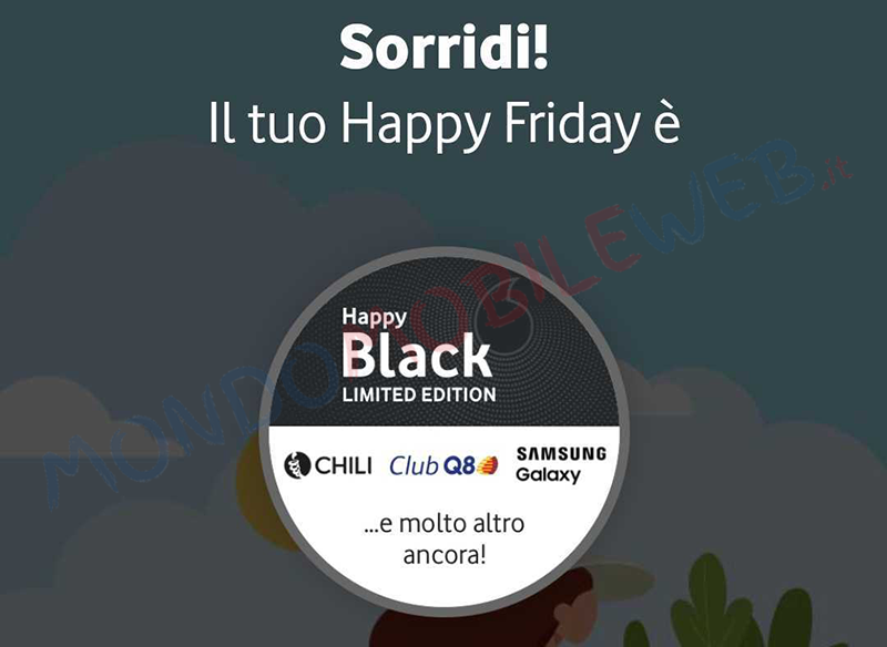 L’operatore rosso approfitta dunque del proprio programma di fidelizzazione Vodafone Happy Friday per sponsorizzare gli sconti e le iniziative del programma a pagamento Happy Black Limited Edition, invitando i clienti non ancora iscritti ad aderire, usufruendo di un mese di prova gratuito.