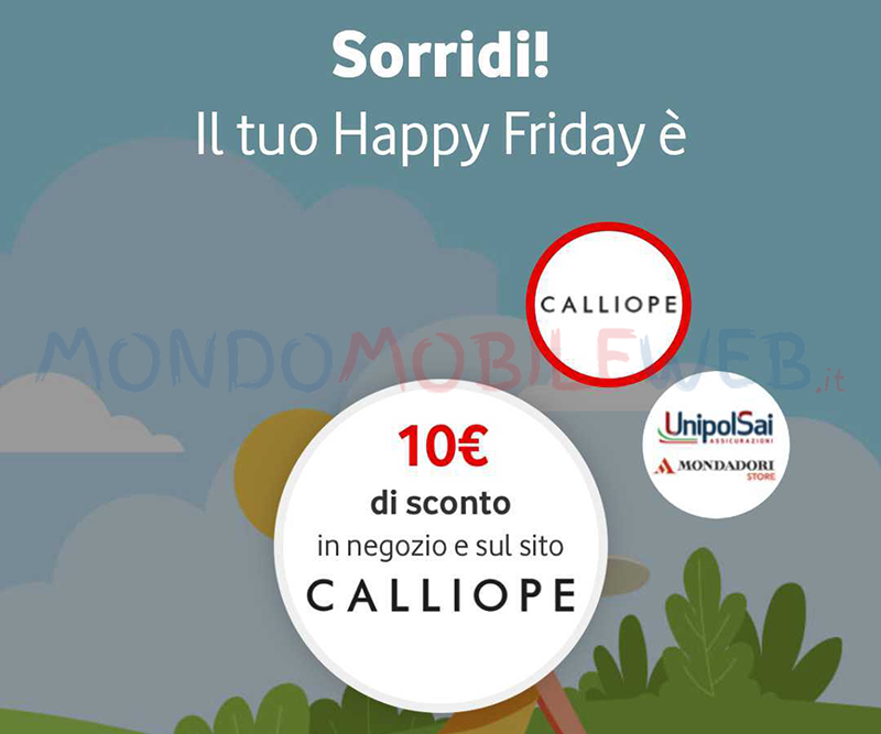 Per questo Happy Friday del 18 Giugno 2021, l’operatore telefonico Vodafone omaggia i propri clienti iscritti con uno sconto Calliope e una Gift Card Mondadori. Invece ad altri vengono proposti 6 mesi di Amazon Prime se attivano l’offerta Vodafone Infinito Gold o Vodafone Infinito Black con il primo mese gratuito.