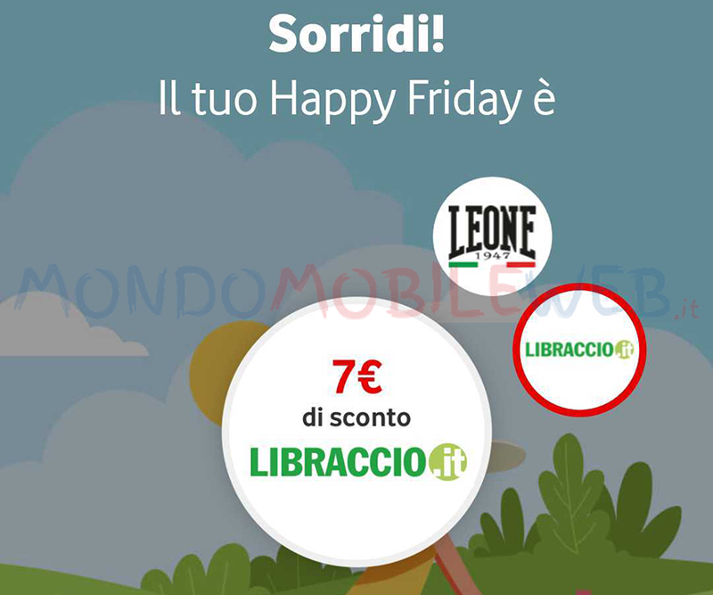 In occasione dell’ultimo Venerdì del mese di Giugno 2021, nell’ambito del proprio appuntamento con l’Happy Friday, l’operatore telefonico Vodafone offre in omaggio una serie di sconti su diversi brand come: Libraccio, Leone 1947 e Penny Market.