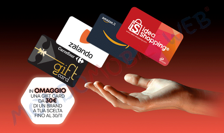 Con le sue offerte consumer ricaricabili o in abbonamento, come ad esempio la 5G Maxi Promo 20 Anni a 19,90 euro al mese per 6 mesi, Linkem sta offrendo in omaggio una gift card da 30 euro, valida per diversi brand a propria scelta.