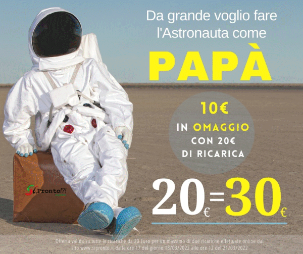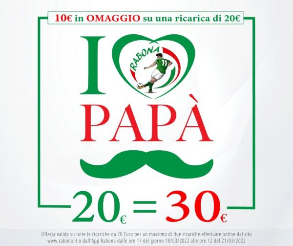 Anche per la Festa del Papà, festeggiata il 19 Marzo 2022, Rabona Mobile e il suo secondo brand Sì Pronto!?! metteranno a disposizione la promo sulla ricarica online, offrendo come di consueto 10 euro di credito bonus, per un massimo di due volte.