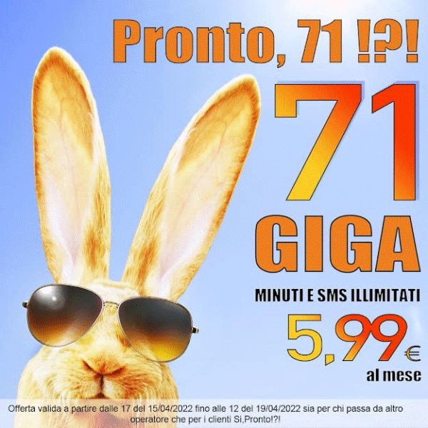 Passando invece a Pronto 71, lanciata dal secondo brand Si, Pronto!?!, innanzitutto si ricorda che questa offerta era stata già disponibile in passato, ma in seguito era stata chiusa in commercializzazione.
