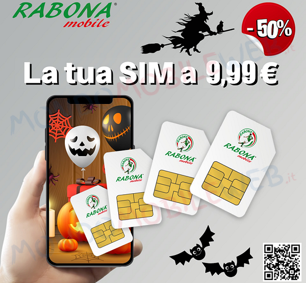 L’operatore virtuale Rabona Mobile ha lanciato nelle ultime ore delle promozioni in occasione di Halloween 2022, in particolare riproponendo la promo ricarica online per i già clienti, valida anche con il secondo brand Si, Pronto!?!, e lo sconto del 50% sul costo della SIM per i nuovi clienti.