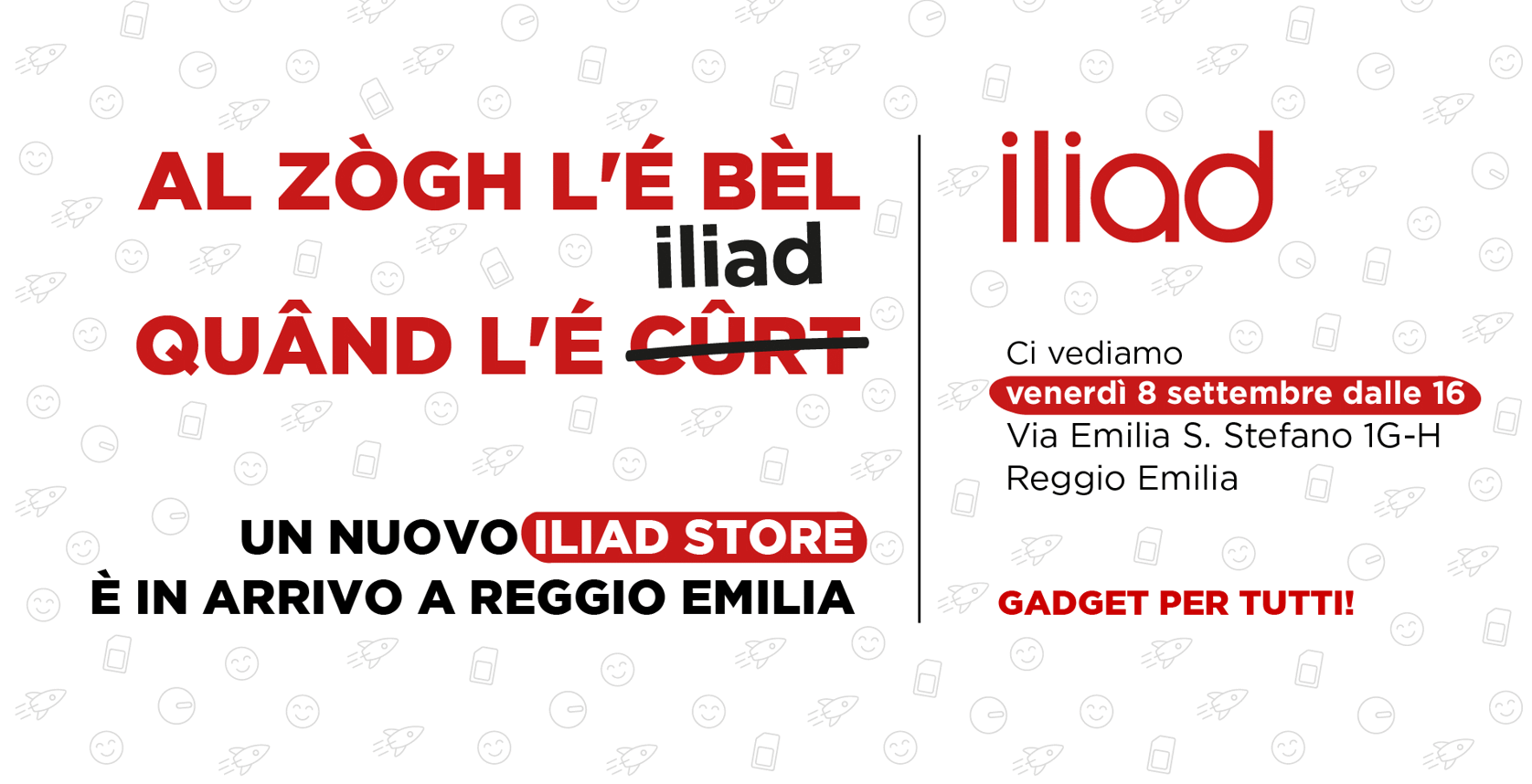 Nel pomeriggio di domani, Venerdì 8 Settembre 2023, a Reggio Emilia verrà inaugurato il primo Iliad Store della città. Per l’occasione saranno disponibili gadget omaggio per tutti i visitatori.