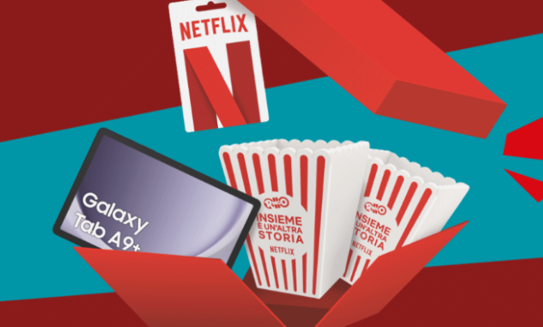 Come spiegato prima, questo nuovo concorso a premi dedicato ai prodotti a marchio Ringo mette in palio una “Story Box” dal valore di 474,88 euro (IVA inclusa), che comprende un tablet Samsung Galaxy Tab A9+ 5G, nella versione con display da 11 pollici e 64GB di ROM (codice modello SM-X216B), un abbonamento a Netflix di 12 mesi al piano standard con pubblicità e una coppia di porta popcorn personalizzati Ringo Netflix.