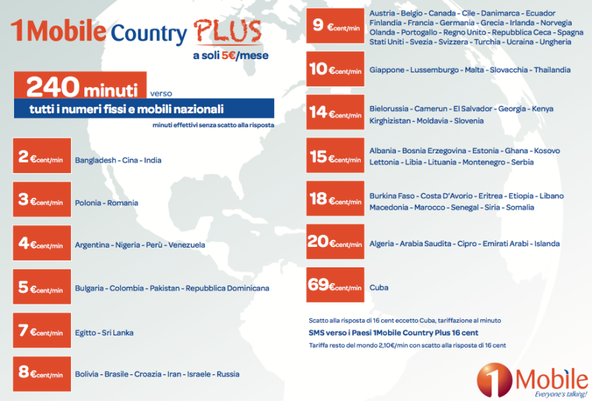 Con il nuovo piano 1Mobile Country Plus chiamare amici e parenti in Italia e all’estero sarà, così, ancora più conveniente.