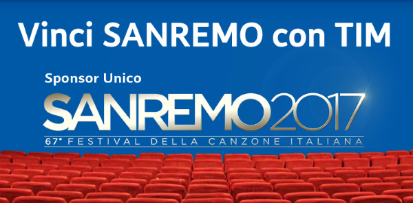 Oggi 3 Febbraio 2017 è l’ultimo giorno per partecipare al concorso a premi “Vinci Sanremo con Tim“. I clienti TIM di rete mobile per partecipare al concorso dovranno: collegarsi al sito www.vincisanremocontim.it, registrarsi compilando l’apposito modulo, prendere visione dell’informativa e privacy e accettare il regolamento. Possono partecipare solo i maggiorenni residenti in Italia.