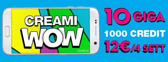 1 credit equivale a 1 minuto di conversazione o a 1 SMS oppure a 1 MB di traffico dati. I credits vengono scalati al raggiungimento di 1 minuto effettivo di traffico voce o 1 SMS o 1 MB effettivo di navigazione. Il costo dell’offerta prescelta viene addebitato sul credito residuo della SIM all’attivazione e ogni 28 giorni. La promozione “Creami Wow 10GB Limited Edition*” permette di avere l’abilitazione alla rete 4G/LTE senza costi aggiuntivi.