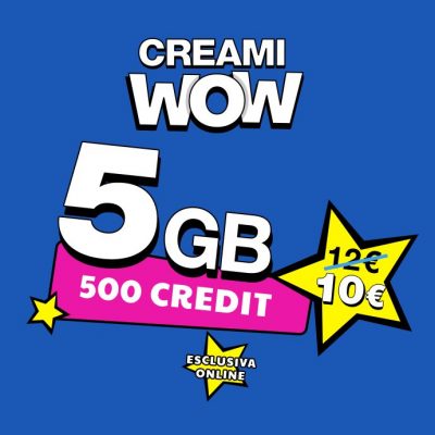 1 credit equivale a 1 minuto di conversazione o a 1 SMS oppure a 1 MB di traffico dati. I credits vengono scalati al raggiungimento di 1 minuto effettivo di traffico voce o 1 SMS o 1 MB effettivo di navigazione. Il costo dell’offerta prescelta viene addebitato sul credito residuo della SIM all’attivazione e ogni 28 giorni. La promozione “Creami Wow 5GB Limited Edition” permette di avere l’abilitazione alla rete 4G/LTE senza costi aggiuntivi.
