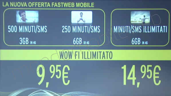 I clienti di rete fissa FastWeb, grazie all’offerta convergente, potranno acquistare le offerte con seguenti prezzi: 0,95 euro ogni 4 settimane per Mobile 100; 5,95 euro ogni 4 settimane per Mobile 250; 5,95 euro ogni 4 settimane per Mobile 500; 9,95 euro ogni 4 settimane per Mobile Freedom.
