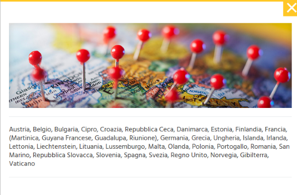 I paesi coinvolti: Austria, Belgio, Bulgaria, Cipro, Croazia, Repubblica Ceca, Danimarca, Estonia, Finlandia, Francia, (Martinica, Guyana Francese, Guadalupa, Riunione), Germania, Grecia, Ungheria, Islanda, Irlanda, Lettonia, Liechtenstein, Lituania, Lussemburgo, Malta, Olanda, Polonia, Portogallo, Romania, San Marino, Repubblica Slovacca, Slovenia, Spagna, Svezia, Regno Unito, Norvegia e Gibilterra.