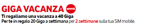 Continua anche la promozione gratuita “Giga in Vacanza” che regala fino a 40 GIGA gratis (20 GIGA ogni 7 giorni per 2 volte anche non consecutive) ai clienti Vodafone mobile voce che hanno un’offerta Fibra o ADSL.