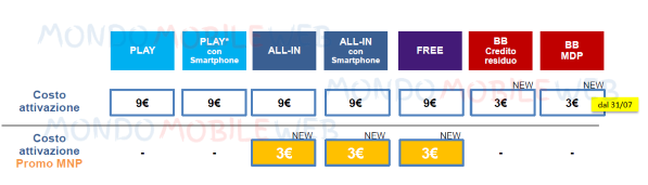 Il costo di attivazione per le opzioni della famiglia PLAY resta di 9 euro per i nuovi clienti.