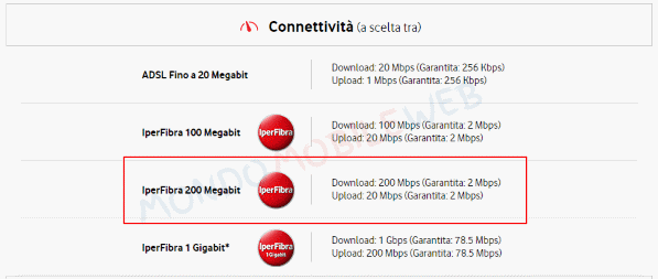 [Aggiornamento] Vodafone garantisce, come si può leggere anche all’interno del suo sito ufficiale, per le Piccole e Medie Aziende, le seguenti coperture: ADSL Fino a 20 Megabit, con Download 20 Mbps e Upload 1 Mbps; IperFibra 100 Megabit, con Download 100 Mbps e Upload 20 Mbps; IperFibra 200 Megabit, con Download 200 Mbps e Upload 20 Mbps; IperFibra 1 Gigabit, con Download 1 Gbps e Upload 200 Mbps. Quindi la copertura IperFibra 200 Megabit adesso è possibile, ma per ora solo per il business.
