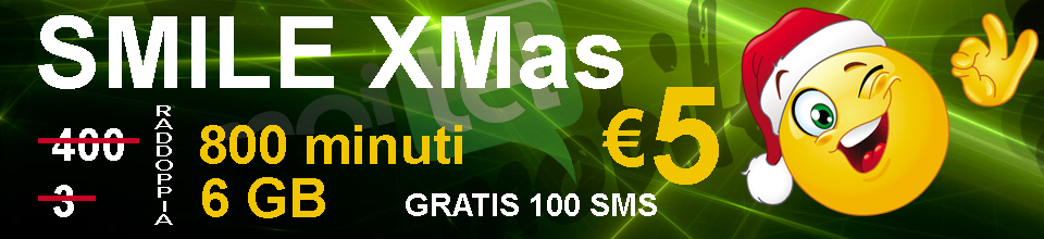 La tariffa più venduta degli ultimi mesi diventa ancora più aggressiva e raddoppia solo però a Natale. Si veste di rosso e torna TUTTO SMILE carica di regali fino alla Befana. La nuova tariffa SMILE XMas, in edizione speciale per Natale 2017, prevede infatti ben 800 minuti voce anziché 400 e 6 Giga di internet anziché 3 confermando sempre il prezzo a 5 euro al mese (ogni 30 giorni).