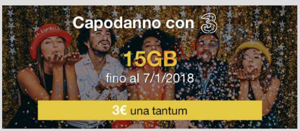 Capodanno con 3 prevede 15 Giga di traffico internet 3G utilizzabili fino al 7 Gennaio 2018.