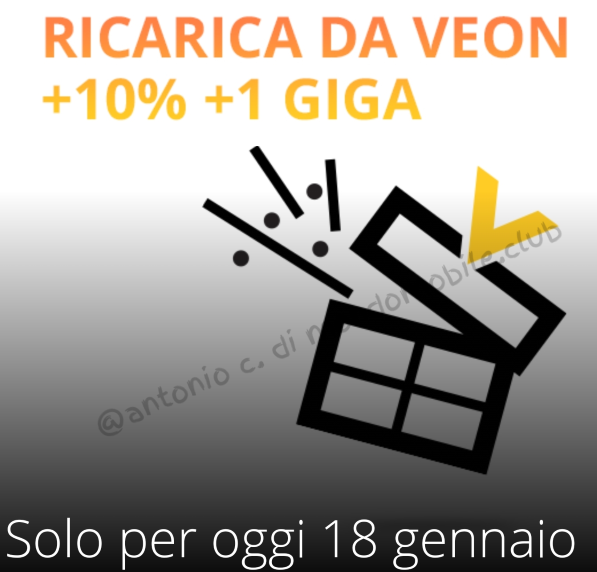 In più fino al 21 Gennaio 2018 è disponibile la Promo Ricarica Veon che offre 1 Giga Gratis da utilizzare in 28 giorni se si ricarica tramite l’App Veon. L’offerta Promo Ricarica Veon prevede una durata di 28 giorni dall’attivazione, che avviene dopo aver effettuato una ricarica con carta di credito o PostePay dall’App Veon.