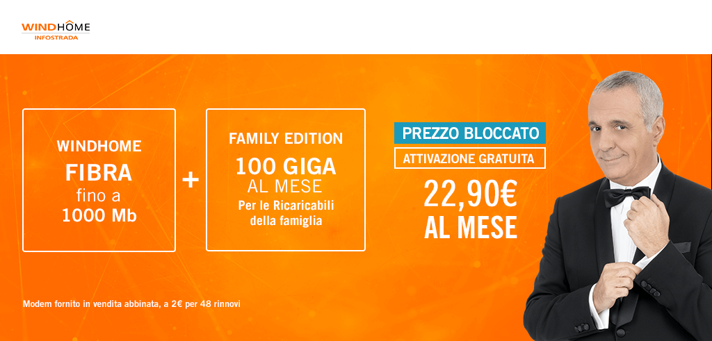 Wind: dal 20 al 26 Febbraio 2018 nuova promo web WindHome + Family Edition 100GB a partire da 22,90 euro al mese