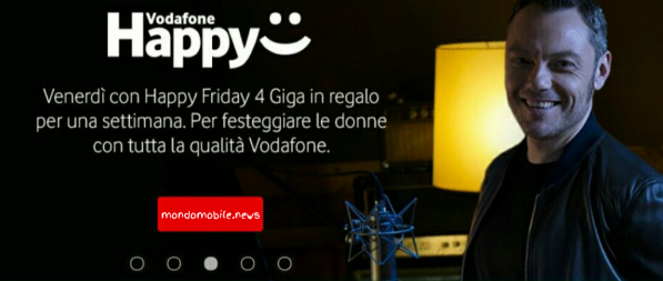 Vodafone Italia, in occasione della Festa della Donna dell’8 Marzo 2018, ha deciso di regalare ai suoi clienti, grazie al nuovo appuntamento Happy Friday previsto per Venerdì 9 Marzo 2018, la promozione Happy 4 Giga che prevede 4 Giga in 4G per 1 settimana dall’attivazione.
