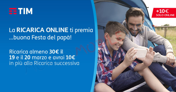 Tim: per la Festa del Papà, oggi 19 e domani 20 Marzo 2018, ritorna la promo ricarica online
