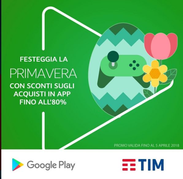 Fino al 5 Aprile 2018, in occasione della Primavera, Tim informa che tutti i propri clienti, e non solo, possono usufruire di consistenti sconti per gli acquisti in App e giochi, disponibili sullo store Google Play.