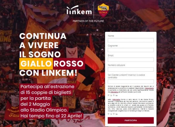 Dal 14 al 22 Aprile 2018, tutte le persone fisiche maggiorenni residenti e/o domiciliati in Italia e nella Repubblica di San Marino, possono partecipare al nuovo concorso a premio “Vinci premi giallorossi con Linkem”.
