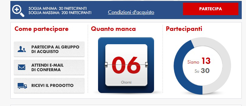 Una volta raggiunta la soglia minima di acquirenti, in questo caso trenta, il gruppo d’acquisto viene considerato ufficialmente valido e il cliente riceverà, tramite email, “conferma di avvenuta attivazione”.